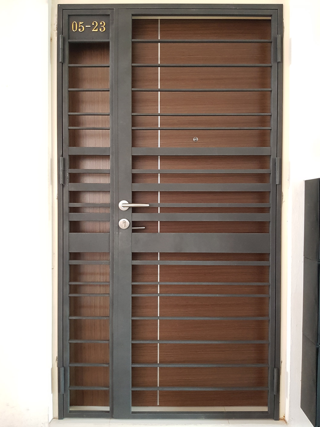 The main door is recommended to be full solid in material to enhance durability and is required for better fire hazard protection. The veneer doors are machine clad (to prevent Peeling) with natural water-resistant veneer wood, thus it does not require any repainting or lacquering. The solid veneer door is water-resistant on the surface and weather proof. It is maintenance free and can be easily clean using a wet cloth. The door also comes with a fire-resistance certification if required by HDB regulations*.